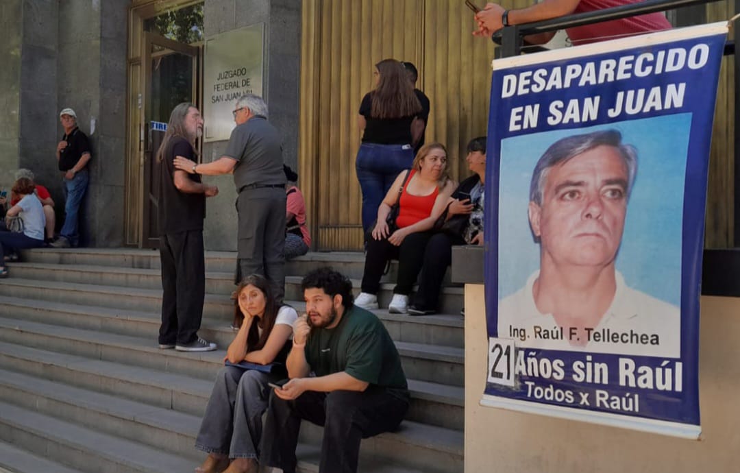 El juicio por la desaparición forzada del ingeniero Raúl Tellechea, ocurrida el 28 de septiembre de 2004, llegó a su fin después de años de debate. Según manifestó el Tribunal, no se pudo probar la desaparición forzada del ingeniero Raúl Tellechea y decidió la absolución de todos los imputados. “Fiscalía y la querella no han podido acreditar el tiempo, modo y lugar de la desaparición de Tellechea”, explicó Rattá.La jueza Eliana Rattá, miembro del tribunal que completan las juezas (San Juan), Carolina Pereira y Gretel Diamante (ambas de San Luis), comenzó diciendo: “Queremos expresar nuestro profundo respeto por el dolor de la familia y amigos del ingeniero Raúl Tellechea, en especial por el de sus cuatro hijos. A sí mismo queremos trasmitirle nuestro reconocimiento por la lucha que mantuvieron por tener una respuesta del sistema judicial. Entendemos la incertidumbre que atravesaron durante tantos años, somos conscientes del dolor de la desaparición de un familiar y la búsqueda sin respuesta. Nuestro deber es despojarnos de subjetividades y basados solo en los hechos probados en el juicio” Por unanimidad se resolvió: la absolución de todos los imputados. De esta manera, los exdirectivos de la Mutual de la Universidad Nacional de San Juan (UNSJ), Luis Moyano (exviceministro de Desarrollo Humano de la gestión giojista), Miguel del Castillo Luis Alonso y Eduardo Oro (exfuncionario del Ministerio de Turismo en el gobierno giojista), el expolicía Alberto “Lali” Flores, el exjefe de Policía de la administración giojista, Miguel González, y el comisario general.retirado Mario León, ex jefe del área Seguridad Personal, Isabel Ahumada y Marcelo Cachi, exsecretario del Consejo Superior de la UNSJ, quedaron absueltos. El Tribunal concluyó que el delito de desaparición forzada “no ha sido probado” en la causa Tellechea. Uno de los principales fundamentos es que la acusación no logró acreditar los dos elementos necesarios que exige el tipo penal: la privación ilegal de la libertad y la negativa del Estado a reconocer esa detención o informar el paradero de la víctima. “La falta de contacto de Tellechea durante todos estos años con su familia, sobre todo con sus hijos, nos permite afirmar, sin lugar a dudas, su desaparición. La búsqueda debe continuar y recae sobre nuestro Estado la búsqueda de Raúl Tellechea y con la presunción de vida”, dijo la magistrada. Los hijos y familiares del ingeniero siguieron con desazón la lectura.