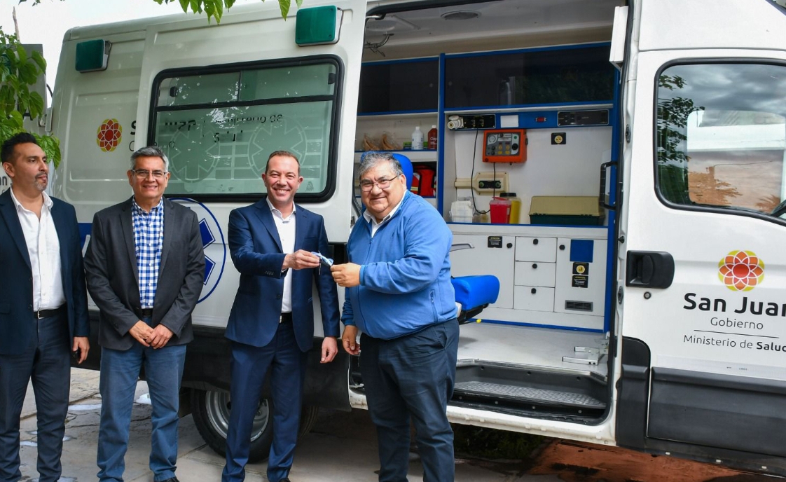 Amílcar Dobladez, se reunió con el intendente de Ullum, Julián Domínguez, para realizar la entrega de una ambulancia de traslado de pacientes. En la sede de la Municipalidad de Ullum, el ministro de Salud, Amílcar Dobladez y el intendente, Julián Domínguez, encabezaron el acto de entrega en comodato de una ambulancia IVECO Daily, destinada al traslado de pacientes de mediana complejidad. Un pedido del Gobernador, Marcelo Orrego quien escuchó a la comunidad de Ullúm. Esta incorporación tiene como objetivo reforzar la atención de la comunidad del departamento.La unidad está equipada con los elementos necesarios para la atención de emergencias, entre ellos camilla, tubo de oxígeno, tabla rígida de madera, cuellos ortopédicos, insumos descartables y un maletín de urgencias. Cabe destacar que en octubre de 2024 ya se había entregado otra ambulancia para el CIC de Ullum.En el departamento también se encuentran las Unidades Sanitarias Móviles, al lado del CIC, del 29 de septiembre al 3 de octubre. Anteriormente estuvieron en el Centro de Salud Rollón, del 15 al 26 de septiembre, donde realizaron 601 prestaciones.Las Unidades Sanitarias Móviles brindan los siguientes servicios: radiografías, ecografías, ORL, oftalmología, odontología, fonoaudiología, trabajo social, nutrición, testeos de VIH, sífilis, entre otros. Avances en la ampliación y remodelación del Centro de Salud de UllumEn paralelo, el Gobierno de San Juan avanza con el Plan de Modernización y Ampliación del Centro de Salud de Ullum, con el fin de optimizar la atención de los 6.454 habitantes del departamento.El proyecto contempla la ampliación de 200 m² y la remodelación de otros 220 m² del edificio. Estas obras no solo buscan mejorar las condiciones edilicias, sino también brindar una respuesta más eficiente y de mayor calidad a las necesidades de salud de la población. Entre los principales trabajos se incluyen:• Nuevos consultorios médicos, de odontología y kinesiología. • Ampliación de la sala de espera, admisión, farmacia, sala de radiología y laboratorio. • Construcción de tres sanitarios: dos para pacientes (con accesibilidad para personas con discapacidad) y uno para el personal. • Pintura interna y externa, cambio de pisos, modernización de la instalación eléctrica, nuevas luminarias, señalética, colocación de telas mosquiteras en las ventanas e instalación de aires acondicionados. El ministro Dobladez estuvo acompañado por el secretario de Medicina Preventiva, Emergencia y Catástrofe, Pablo Arroyo; el jefe de Zona Sanitaria IV, Daniel Gualpa; la jefa de Área Programática, Eliana Fernández; y la jefa de Enfermería de la Zona Sanitaria IV, Daniela Brunotti, entre otras autoridades.Por parte del municipio de Ullum participaron el secretario de Gobierno, Claudio Chirino; la secretaria de Hacienda, Analía Lépez; el asesor letrado, Gastón Gil; la responsable de Salud Municipal, Emilce Vargas; y los concejales Vanesa Cortez, Eduardo Trigo, Aldo Quiroga y Verónica Trigo.