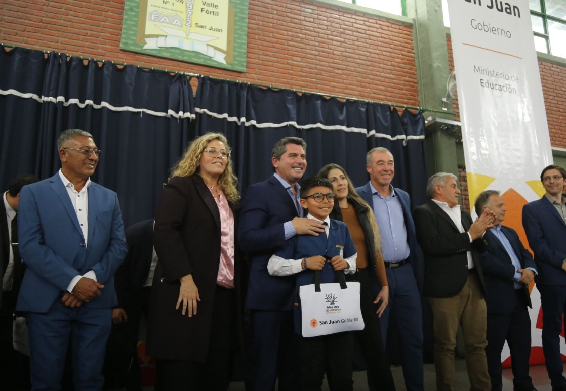 El mandatario inauguró el Acueducto de Refuerzo a Planta Potabilizadora Astica, un CDI en Baldes de Chilcas y entregó computadoras en San Agustín. Durante una jornada, el gobernador Marcelo Orrego recorrió distintas localidades de Valle Fértil. En Astica inauguró el Acueducto de Refuerzo a Planta Potabilizadora, un CDI en Baldes de Chilcas y entregó computadoras en San Agustín. Durante la visita estuvo acompañado por el vicegobernador Fabián Martín, el intendente de Valle Fértil, Mario Riveros, ministros de Infraestructura, Fernando Perea; Producción, Trabajo e Innovación, Gustavo Fernández; de Familia y Desarrollo Humano, Carlos Plateros y demás funcionarios. En la localidad de Astica, el gobernador inauguró un proyecto clave para mejorar el servicio de agua potable: la construcción de un acueducto de refuerzo que conecta la cámara desarenadora existente con la planta potabilizadora administrada por la unión vecinal. El objetivo central fue ampliar la capacidad de provisión de agua, asegurando la cobertura actual y futura de la población.La obra incluyó la renovación de 100 metros de cañería de filtro. Además, se instalaron tres válvulas de aire, una válvula esclusa, una válvula de desagüe y los empalmes inicial y final. La capacidad máxima de conducción quedó establecida en 5.702 m³ diarios, muy por encima de la demanda proyectada de 972 m³ por día, lo que garantiza un servicio confiable para los próximos años. Según las estimaciones, la población local pasará de 853 habitantes (Censo 2022) a 1.059 en 2045. Con un consumo promedio de 300 litros por persona al día, el sistema inaugurado ofrece un margen de seguridad que excede ampliamente las necesidades futuras. Este acueducto ya representa una mejora estructural fundamental para Astica y Valle Fértil, al permitir un abastecimiento estable, seguro y con capacidad de acompañar el crecimiento poblacional durante las próximas décadas. En este contexto, el mandatario dijo que “para mí es un privilegio y un honor poder estar acá compartiendo un momento especial. Para mí la política significa hacer, resolver los problemas que la gente sola no puede resolver.Hoy estamos acá habiendo cumplido con la palabra empeñada, ahora con este refuerzo tan importante para la planta potabilizadora de Astica”. Agregó que “estamos entregando además insumos de un programa muy importante, Aprender, Trabajar y Producir, tres palabras que nos definen y que traen justicia social: aprender un oficio, trabajar y llevar el sustento a la casa, producir y generar ese círculo virtuoso tan necesario en estos tiempos”. Por otro lado, dijo: “Entregamos computadoras dentro de un programa de alfabetización que es el primero de la Argentina en esta etapa contemporánea, y que se complementa con Comprendo y Aprendo, Transformar la Secundaria y el programa Domingo Faustino Sarmiento Cultivando Futuro. Vamos a entregar 25.000 computadoras para nuestros chicos de San Juan, en la tierra de Sarmiento, para que tengan oportunidades y movilidad social ascendente. No importa de dónde venimos, lo que sí sé es que este gobierno va a trabajar todos los días para que nuestros hijos tengan más posibilidades de las que nosotros tuvimos, porque ese debe ser nuestro norte.” El nuevo CDI En Baldes de las Chilas, departamento Valle Fértil, se inauguró el nuevo Centro de Desarrollo Infantil (CDI), un espacio pensado para brindar atención integral a niños y niñas en sus primeros años de vida.El edificio, de casi 288 m², cuenta con salas diferenciadas por edades, comedor, cocina, lactario, área administrativa, sanitarios —incluidos adaptados para personas con discapacidad— y espacios de recreación al aire libre. Construido con estructura metálica sobre platea de hormigón armado, combina tabiques de roca de yeso y cementicio con aislaciones, pisos graníticos y de caucho antigolpes, además de carpinterías de aluminio, chapa y madera.El nuevo CDI permitirá ofrecer asistencia nutricional, estimulación temprana y actividades de psicomotricidad, fortaleciendo la contención y el desarrollo infantil en Valle Fértil. La entrega de computadoras En el marco del Programa “Maestro de América, cultivando el futuro” que lleva adelante el gobierno de la Provincia de San Juan, a través de los ministerios de Educación y de Economía, Finanzas y Hacienda el gobernador Marcelo Orrego llegó a Valle Fértil con 74 notebooks para los maestros de grado, a cargo del aula y 255 netbooks para estudiantes de 5to y 6to grado del departamento. El programa Se suma además a otras dos políticas implementadas y sostenidas por esta gestión como lo son el Plan de Alfabetización Provincial “Comprendo y Aprendo” que incluye la alfabetización digital y el Proceso de Modernización del Estado que apunta, entre otras cosas, a la eficiencia en el sistema educativo. La entrega de computadoras además se complementa con la implementación de EDUGE (Ecosistema Digital Unificado de Gestión Educativa). Siendo San Juan la primera provincia en utilizar una plataforma con Inteligencia Artificial que favorece la gestión educativa.