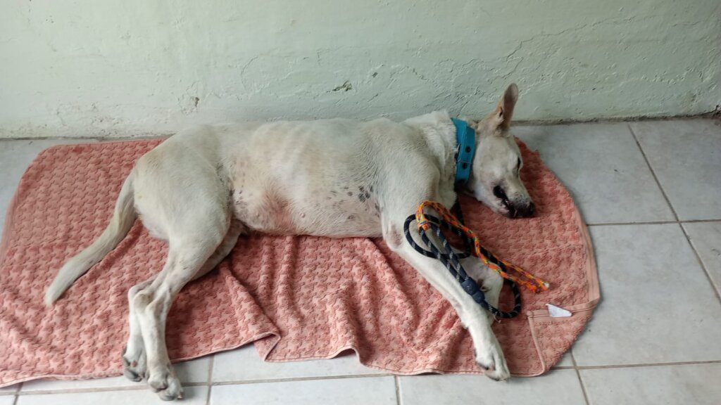 Graciela Quero vecina del departamento y protectora de animales, es quien se hace cargo de los alimentos de Blanca y sus hermanas que esperan la recuperación de ella y visitan diariamente el domicilio donde esta pasando sus días.