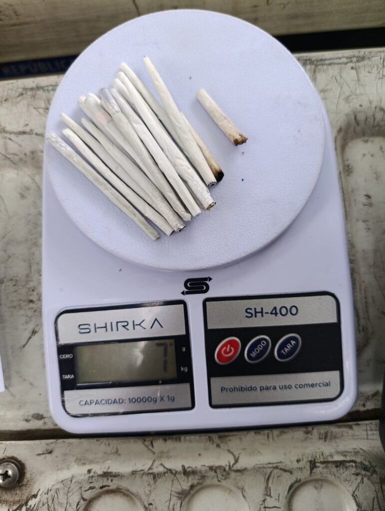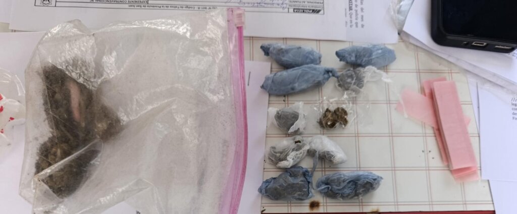 Al entrevistarlo y solicitarle que exhibiera sus pertenencias, hallaron dentro de una mochila una bolsa ziploc transparente con sustancia vegetal de color verde, presuntamente marihuana, y otra bolsa tipo nylon con la misma sustancia fraccionada en 10 envoltorios de distintos colores.