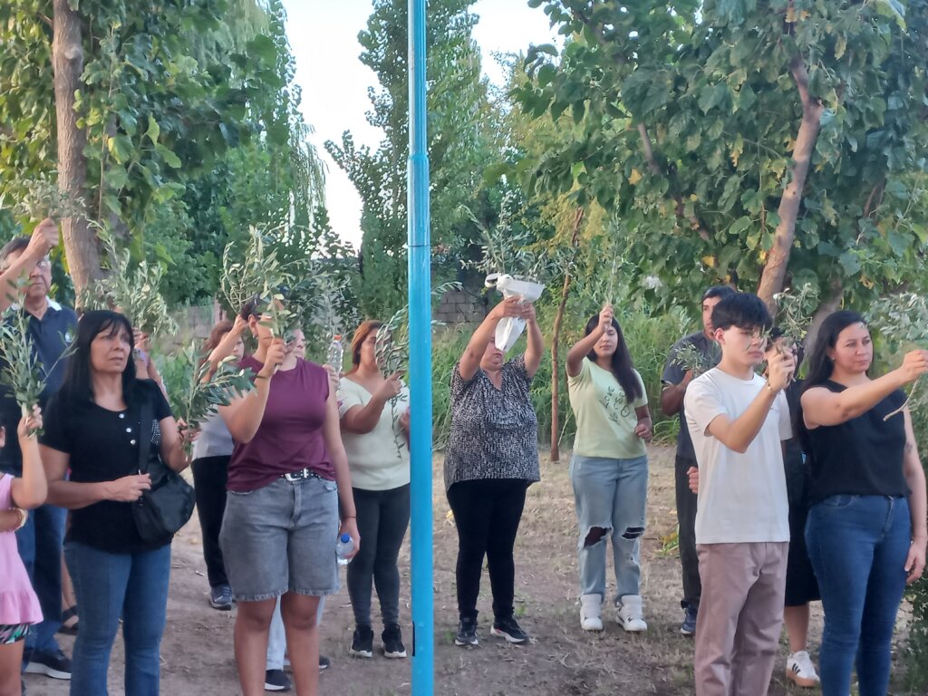 En la tarde del Domingo de Ramos, el padre Daniel Beorchia llevó adelante la bendición de los ramos a las familias de La Majadita. La gruta María Auxiliadora se colmó de palmas y olivos, signos de paz, fe y esperanza compartida.