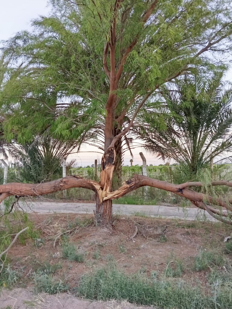 Personal de la cuadrilla de emergencia del Área de Ambiente de la Municipalidad de 9 de Julio trabajó en calle Bilbao, a la altura del barrio Bilbao 2, para despejar la calzada luego de la caída de dos ramas de gran porte, una de las cuales había quedado sobre la calle, obstruyendo el paso vehicular.