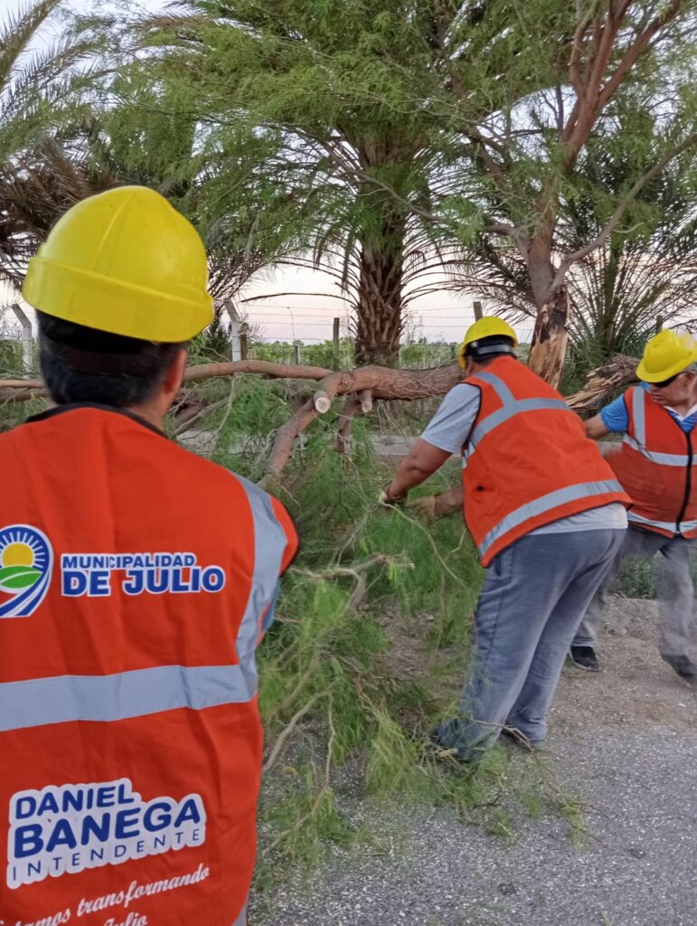 Personal de la cuadrilla de emergencia del Área de Ambiente de la Municipalidad de 9 de Julio trabajó...