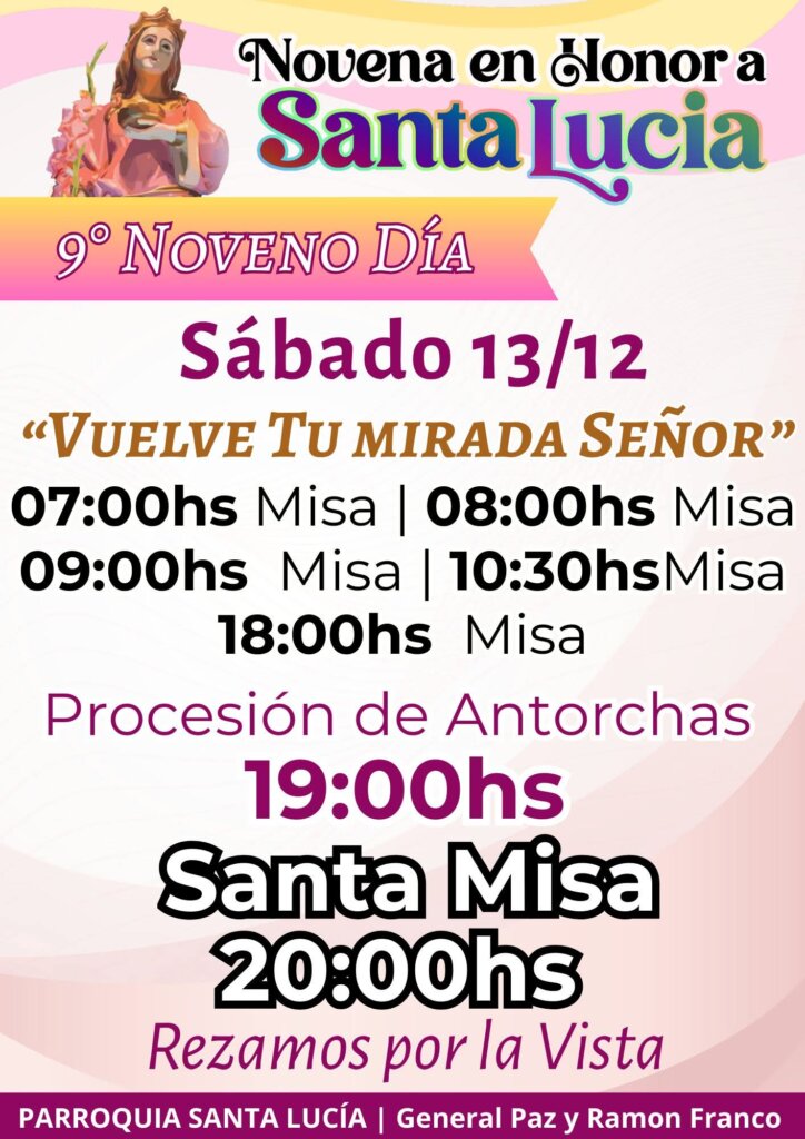 La Parroquia de Santa Lucía invita a toda la comunidad a unirse a las celebraciones en honor a la patrona de la vista, Santa Lucía. En este día especial, se llevarán a cabo varias misas a lo largo del día, culminando con la tradicional procesión de antorchas a las 19 horas.