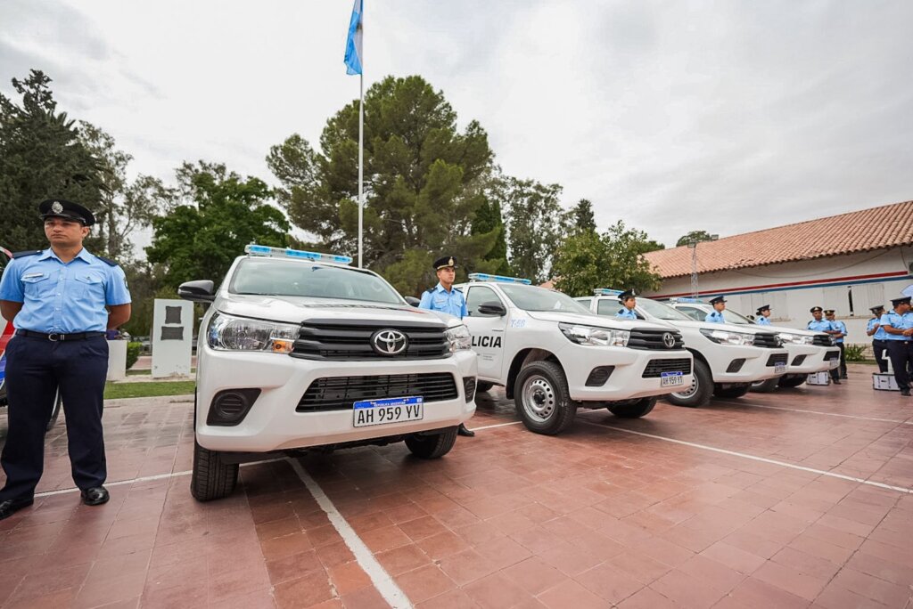 En el mismo acto, el Gobierno provincial avanzó con la entrega de nuevas movilidades policiales, en el marco de un plan de renovación de flota destinado a mejorar la prevención y el patrullaje.