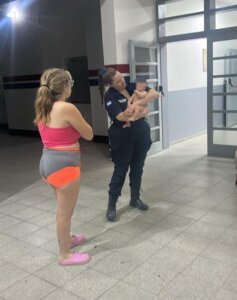 La Cabo Primero López Jesica, jefe de guardia, actuó rápidamente y realizó maniobras de desobstrucción de la vía aérea, logrando reanimar a la bebé.
