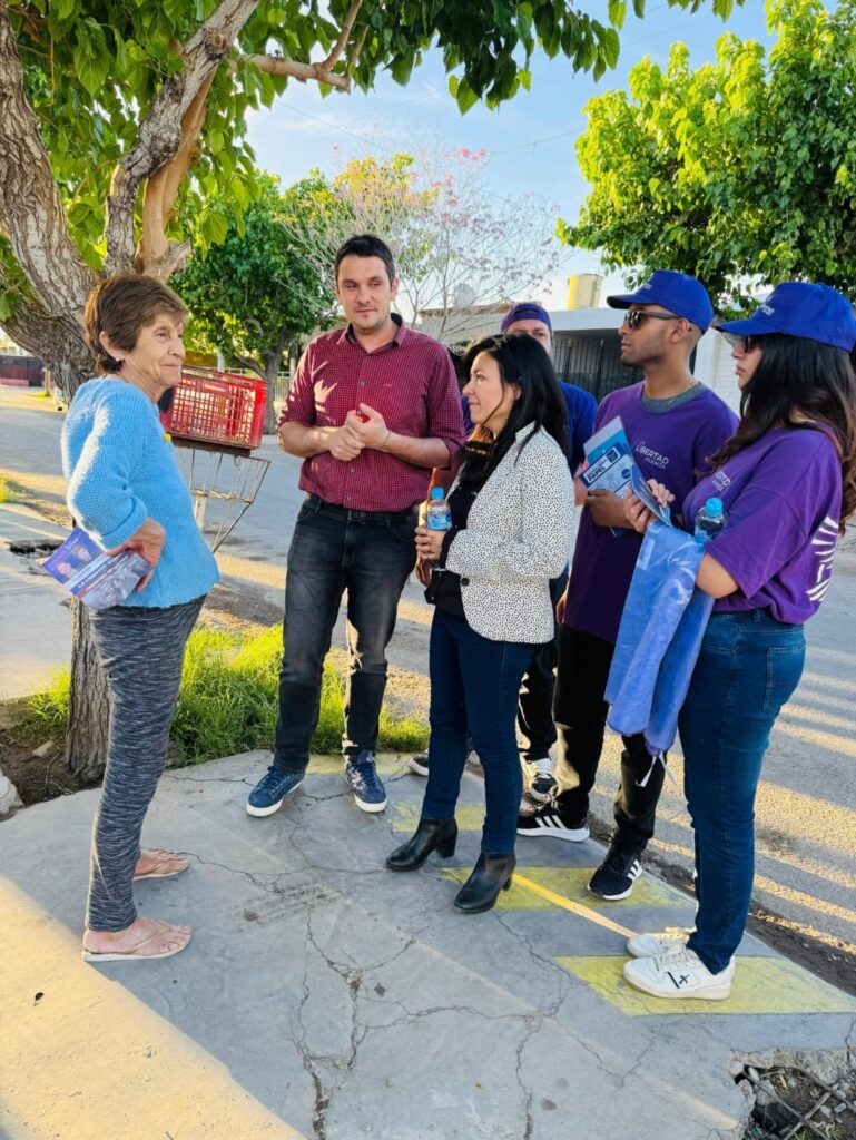 Acompañados por los referentes departamentales Braian Martínez, Victoria García, Luciano de la Presilla y Mahoor Caparroz, de la agrupación Las Fuerzas del Cielo, los candidatos dialogaron con los vecinos, explicaron cómo votar con la boleta única y entregaron las propuestas de campaña de cara a las elecciones del próximo 26 de octubre.