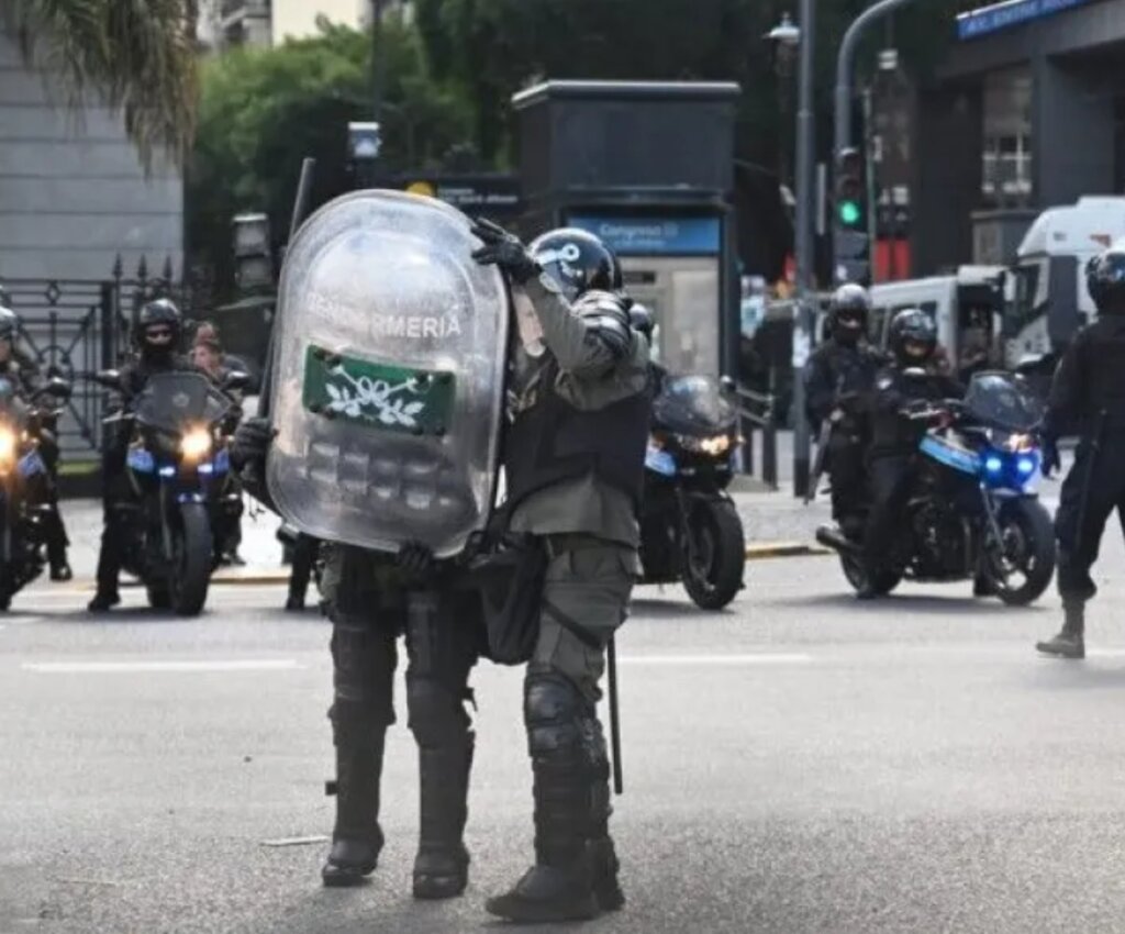 En principio, el personal de Gendarmería y de la Policía Federal retiró a los marchantes de Plaza Congreso. Luego, la Policía de la Ciudad y un camión hidrante avanzaron por las calles aledañas para que los manifestantes queden a la altura de la 9 de Julio.