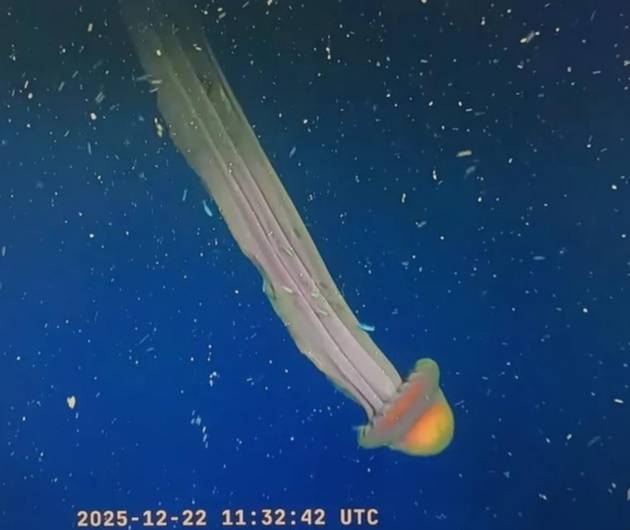 Los investigadores precisaron que “se trata de una medusa fantasma en aguas profundas” y señalaron que “es extremadamente rara y puede crecer en dimensiones extraordinarias” de 10 a 12 metros de largo.