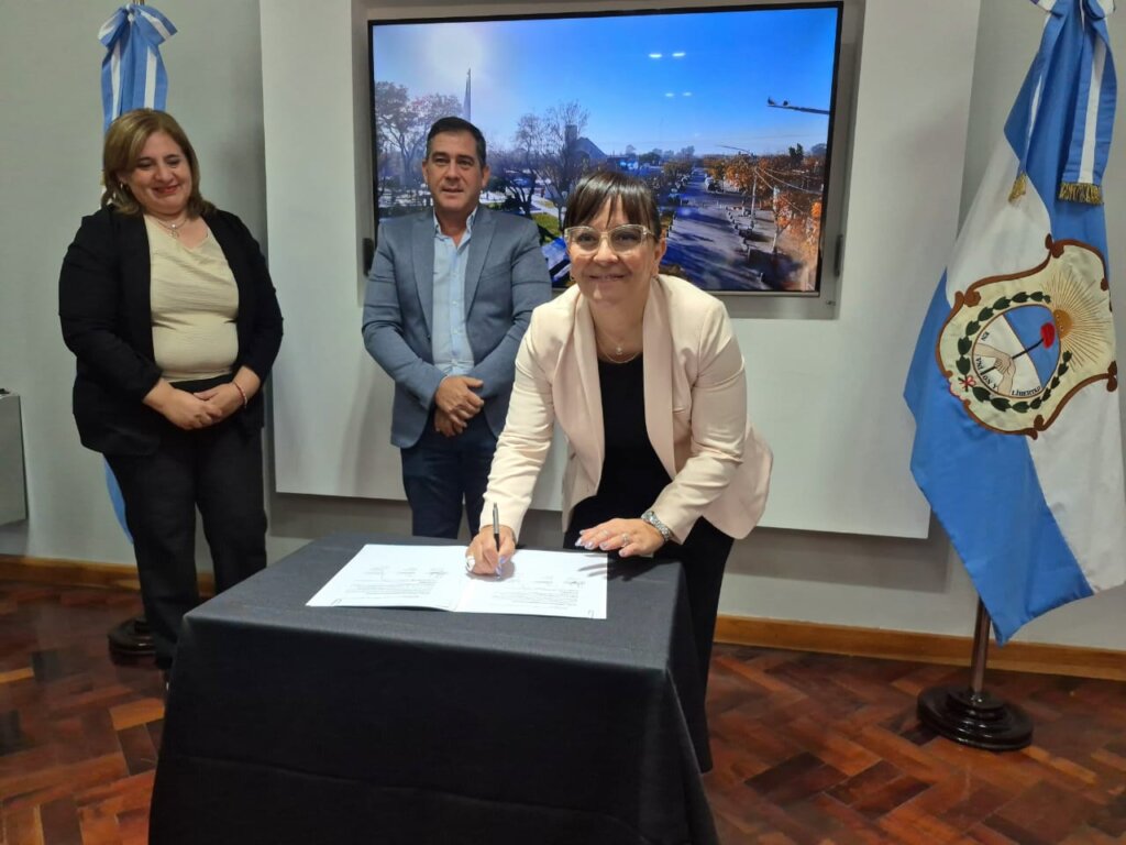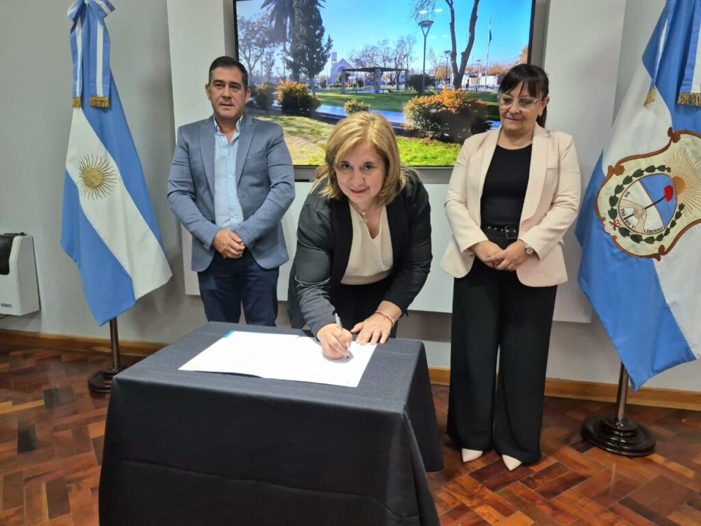 La intendente de San Martín, Analía Becerra, junto a la intendente de Chimbas, Daniela Rodríguez, y el intendente de Angaco, José Castro, firmaron un convenio de hermandad entre los municipios, con el objetivo de potenciar el trabajo articulado en distintas áreas.