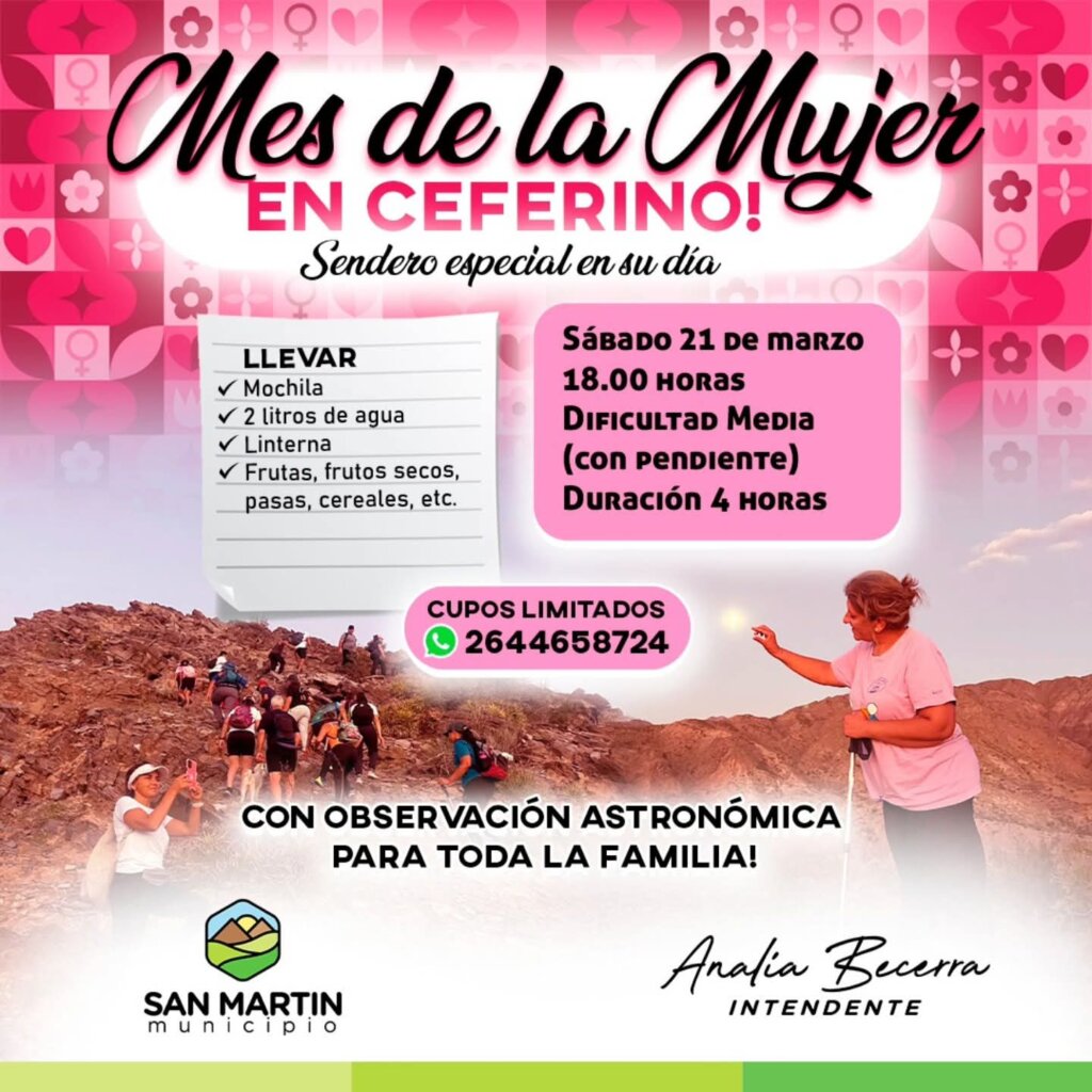 En el marco del Mes de la Mujer, la Municipalidad de San Martín invita a participar de un sendero especial en el Complejo Turístico Religioso Ceferino Namuncurá, una propuesta que combina naturaleza, actividad física y encuentro comunitario.