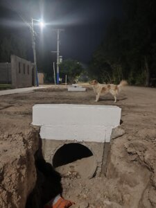 Este sector tenia problemas básicos, con cada lluvia tenían el agua en la puerta de sus casas y hoy se les solucionó un problemón, se les realizo una vía donde el agua tomara un circuito de salida sin acumularse en el loteo y ahora podrán salir por mas agua que caiga.
