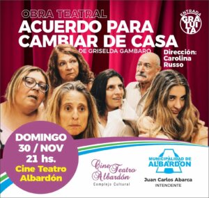 Teatro gratis para hoy domingo en Albardón "Acuerdo para cambiar de casa"