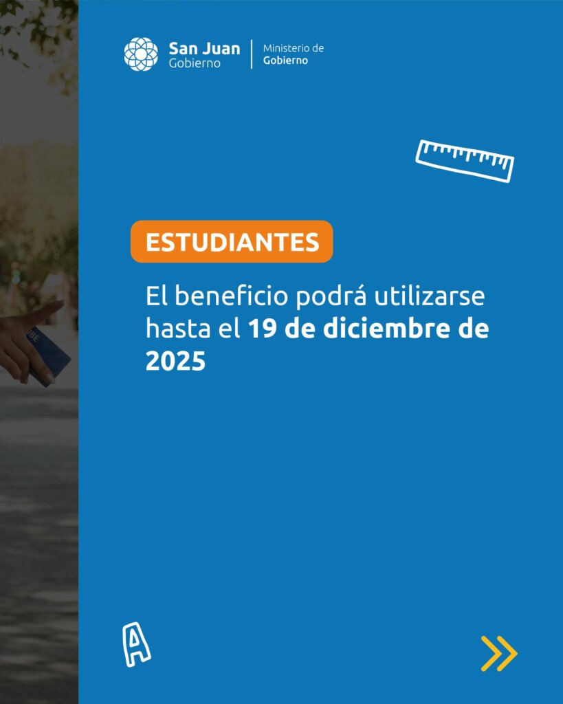 En el caso de los estudiantes, el beneficio podrá utilizarse hasta el 19 de diciembre de 2025, mientras que los docentes que cuenten con credencial tendrán plazo de uso hasta el 29 de diciembre inclusive, según lo informado por el Ministerio de Educación.