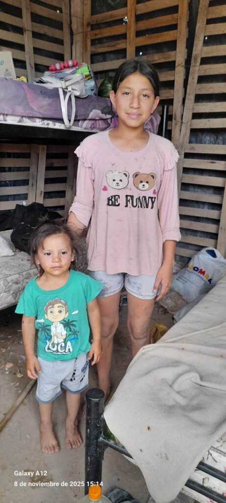 Tiempo atrás viajaron a La Rioja con la esperanza de conseguir empleo, pero no tuvieron suerte y regresaron hace un mes. Desde entonces viven allí, sin techo firme, sin puerta, sin agua, sin luz, y expuestos a los mosquitos, a la interperie no cuentan con baño para higienizarse